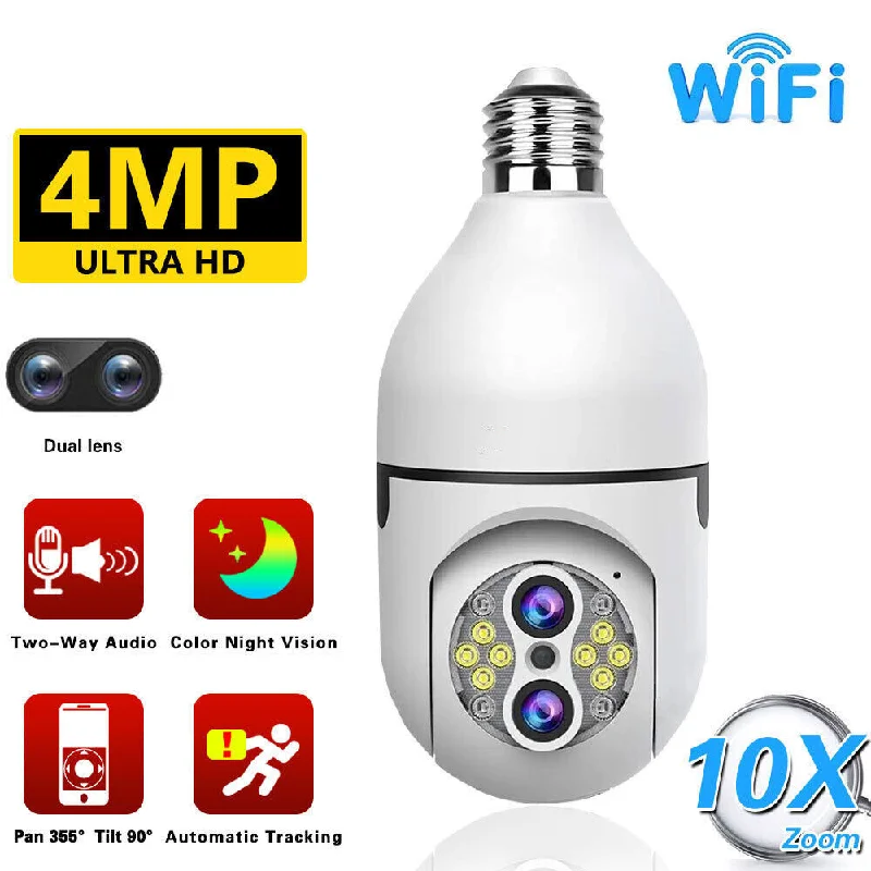 4MP E27 Bulb Camera Dual Lens 10X Zoom Auto Tracking Wifi Surveillance Camera Indoor Security Wireless IP Camera Baby Monitor - Купить с бесплатной доставкой