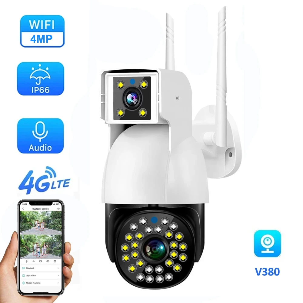MThAthRQUVHere you can buy 4MP V380 4G WiFi PTZ Camera Dual Lens Outdoor Waterproof Camera Auto Tracking Two Way Audio Color Night Vision Security Camera with free delivery to your post office.