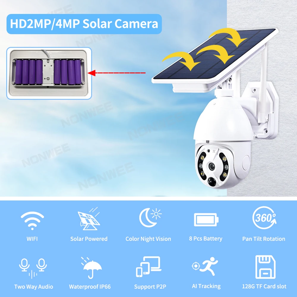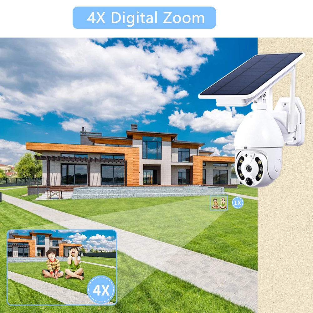 4MP WiFi Solar Camera 2MP Outdoor Wireless PTZ CCTV Security Cameras With Solar Panel Rechargeable Battery Auto Tracking - Купить с бесплатной доставкой