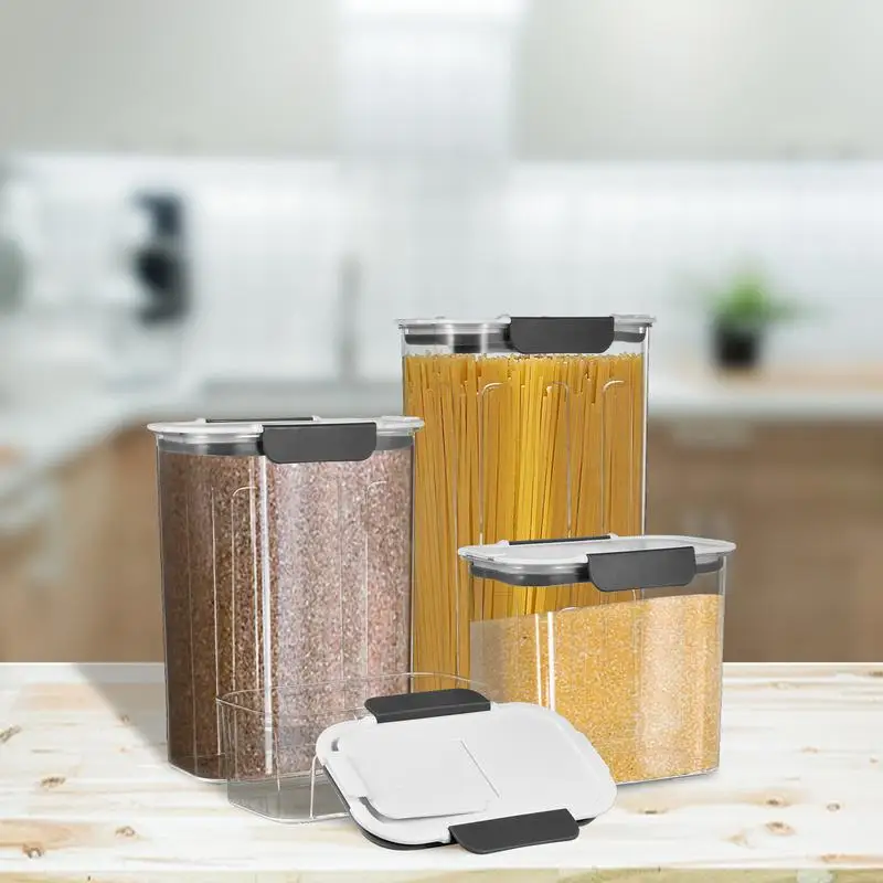 IIANsUIiHere you can buy 4PCS Food Storage Containers Airtight Cereal Storage Containers Plastic Box Cereal Dispenser Kitchen Refrigerator Organizer with free delivery to your post office.