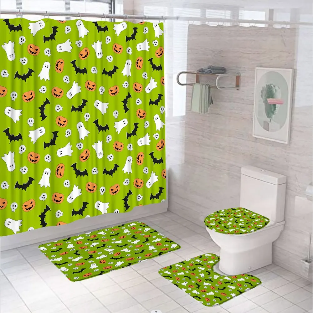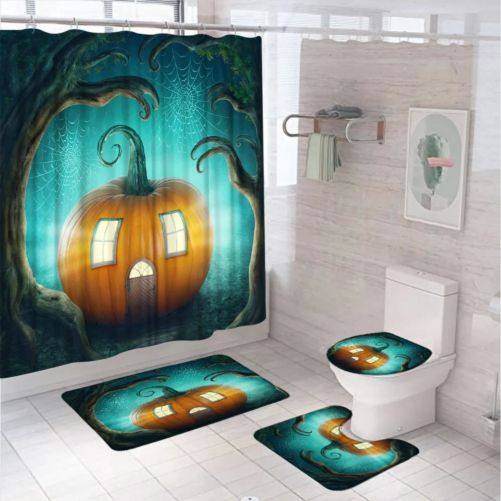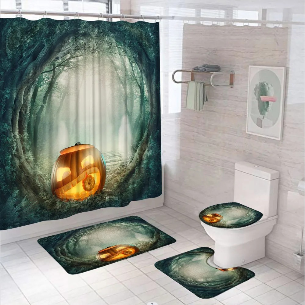 4Pcs Horror Halloween Crow Cemetery Bathroom Shower Curtains Set Bat Castle Tree Moon Screen Non-Slip Bath Mat Rug Toilet Cover - Купить с бесплатной доставкой