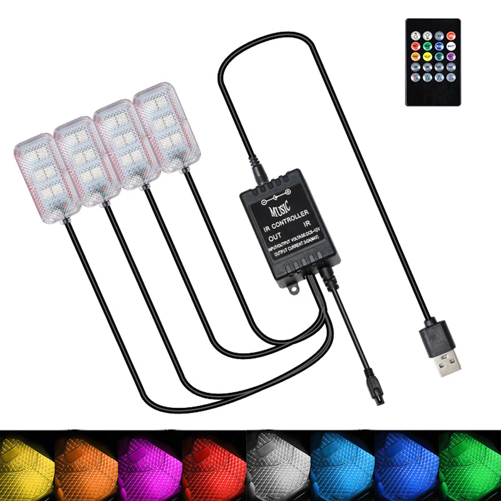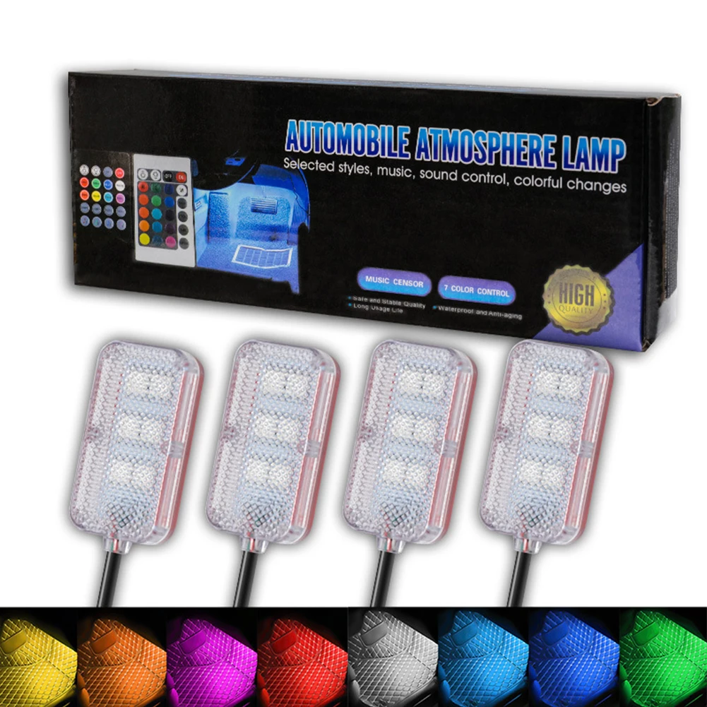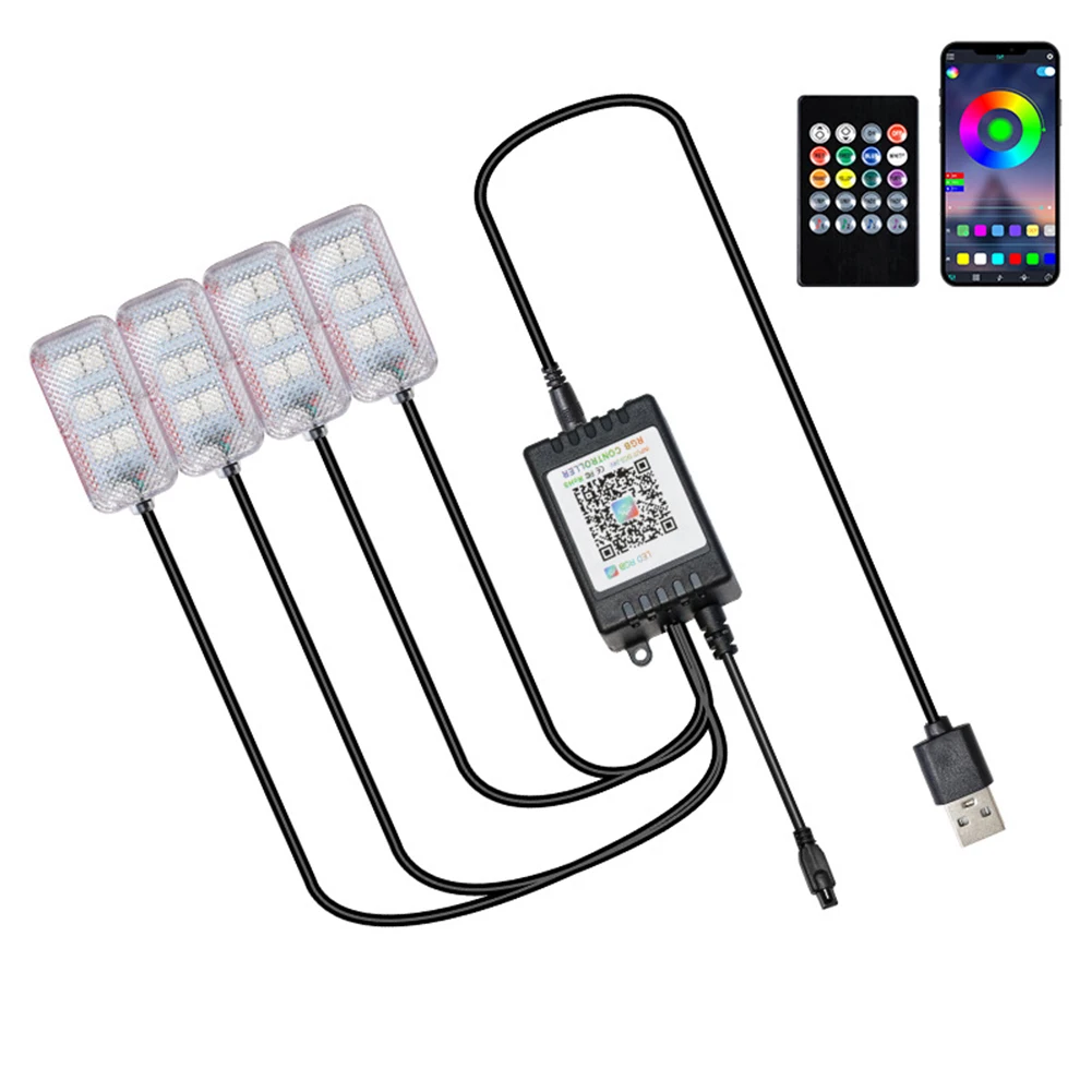 AUCqsoUlwHere you can buy 4Pcs LED Car Interior Ambient Foot Light USB APP Remote Control Lamp Atmosphere Light Decorative Lamp with free delivery to your post office.