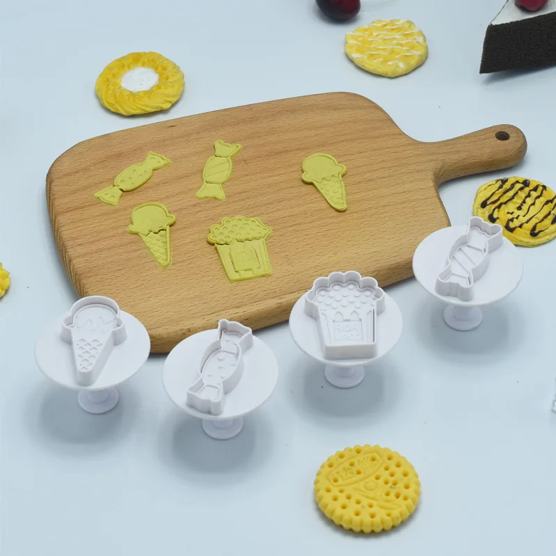 4Pcs/Set Cartoon Ice Cream Cookie Cutters Cute Candy Pattern Fondant Icing Biscuit Embossing Mould Baking Cake Decorating Tools - Купить с бесплатной доставкой