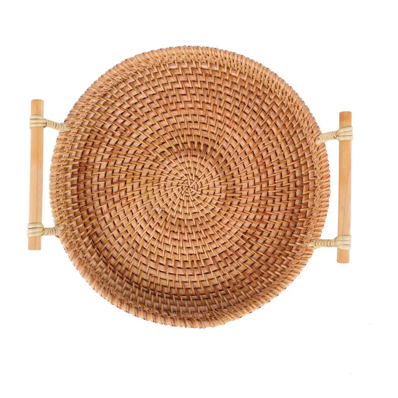 "4X Rattan Bread Basket Round Woven Tea Tray With Handles For Serving Dinner Parties Coffee Breakfast (8.7 Inches)" * Buy Now With Free Shipping Just For $36