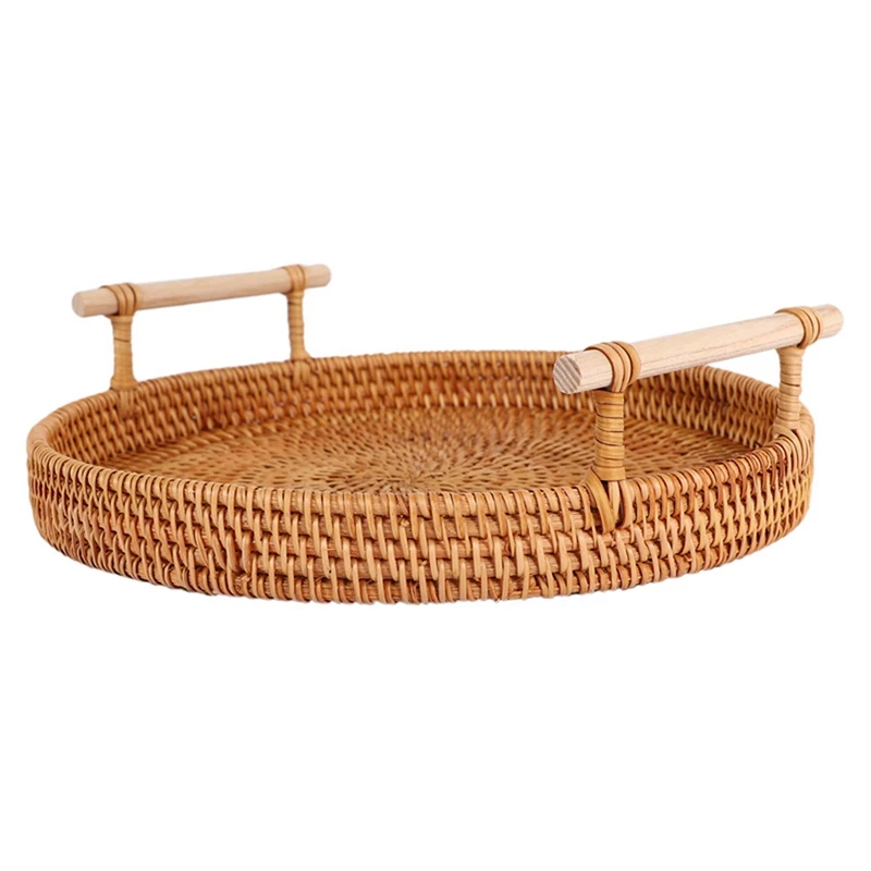 "4X Rattan Storage Tray, Round Basket With Handle, Rattan Tray Wicker Basket Bread Fruit Food Breakfast Display L" * Buy Now With Free Shipping Just For $38