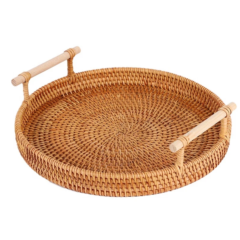 "4X Rattan Storage Tray, Round Basket With Handle, Rattan Tray Wicker Basket Bread Fruit Food Breakfast Display L" * Buy Now With Free Shipping Just For $51