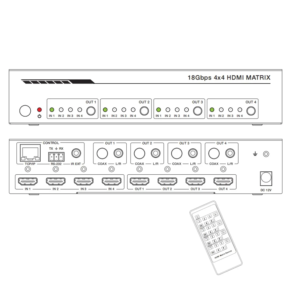 zjMpSwLXxkДолго искали 4X4 HDMI2.0 Matrix Switch with L/R Coaxial Audio Support 4K60Hz,18Gbps,ARC,EDID,RS232,TCP/IP,Web GUI Control AV Switcher, но не могли найти? Предоставляем вашему вниманию 4X4 HDMI2.0 Matrix Switch with L/R Coaxial Audio Support 4K60Hz,18Gbps,ARC,EDID,RS232,TCP/IP,Web GUI Control AV Switcher по лучшей цене на рынке!