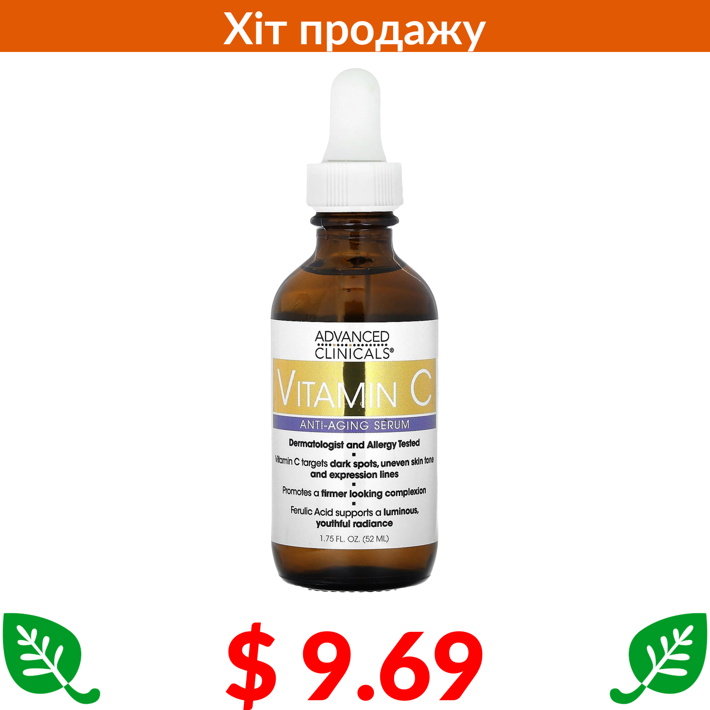 $ 9.69 Advanced Clinicals, вітамін С, антивікова сироватка, 52 мл (1,75 рідк. унції)