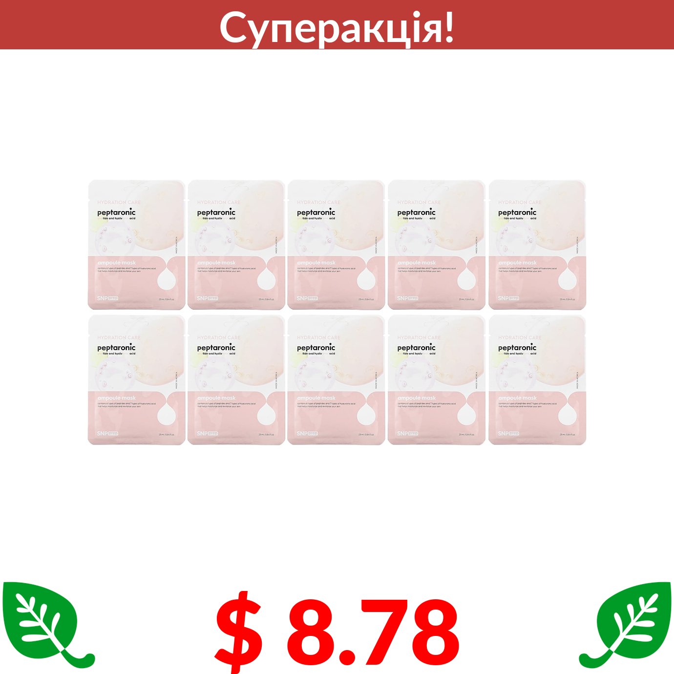$ 8.78 SNP, ампульна маска для краси з пептароновою кислотою, 10 шт. по 25 мл (0,84 рідк. унції)