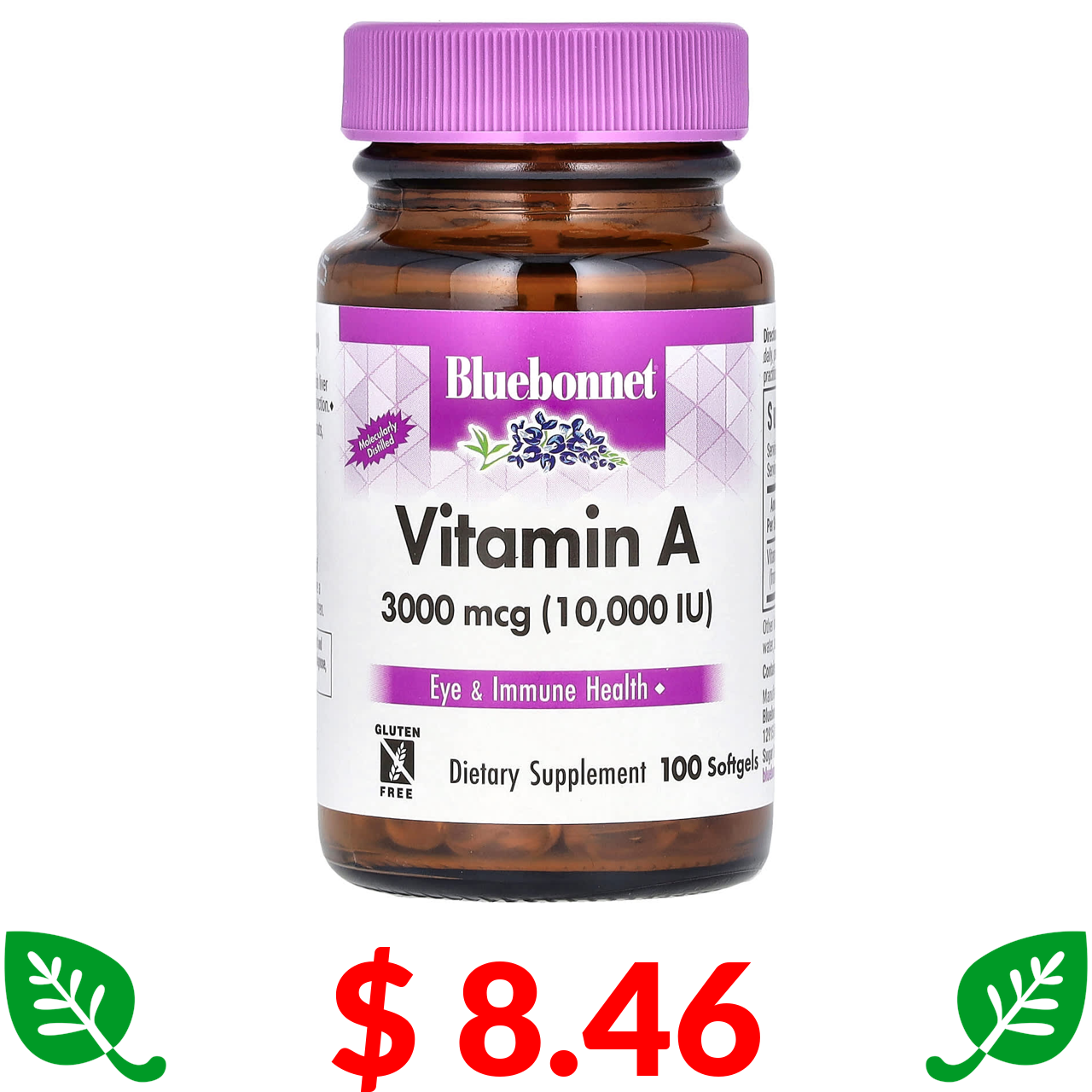 $ 8.46 Bluebonnet Nutrition, вітамін A, 3000 мкг, 100 капсул