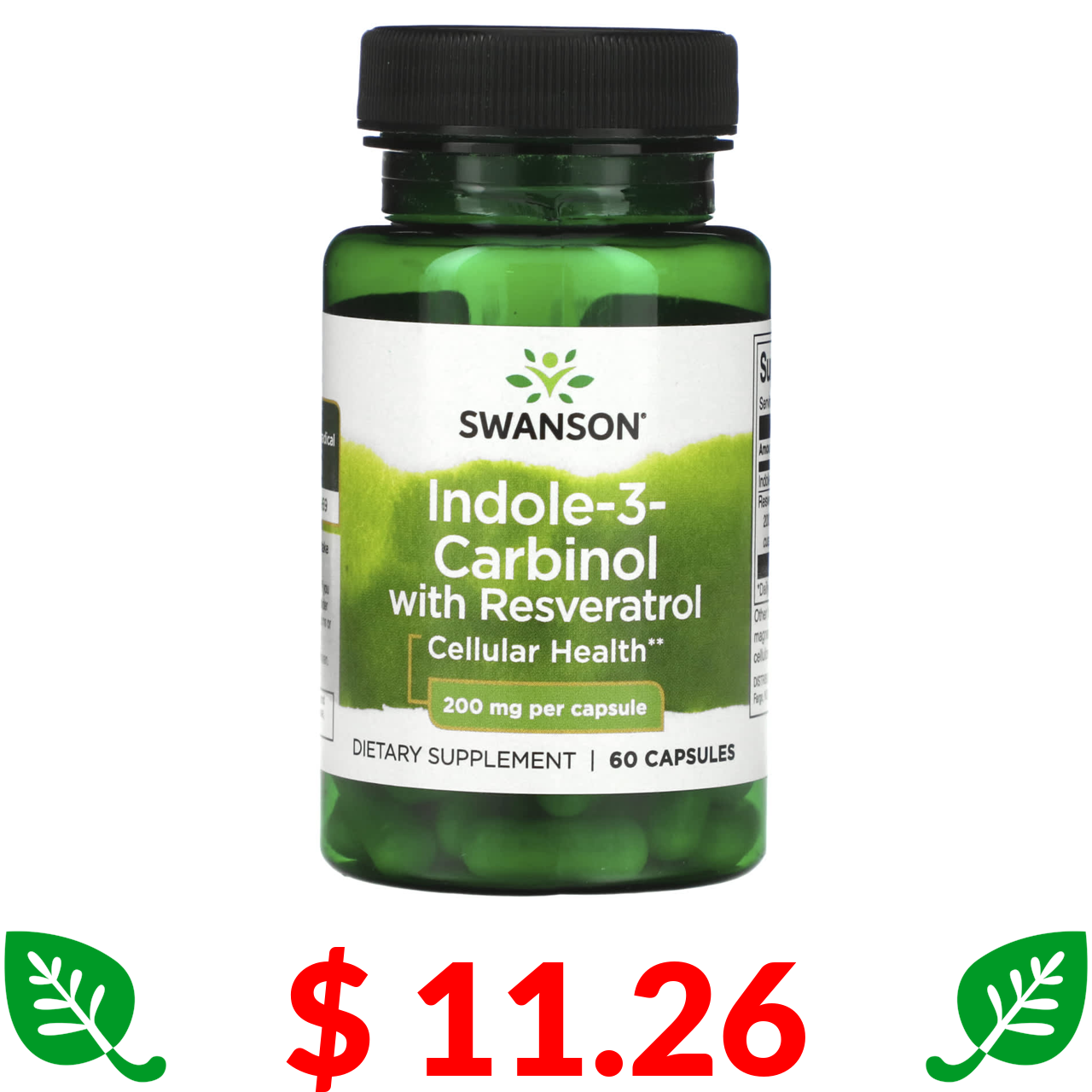 $ 11.26 Swanson, індол-3-карбінол із ресвератролом, 200 мг, 60 капсул