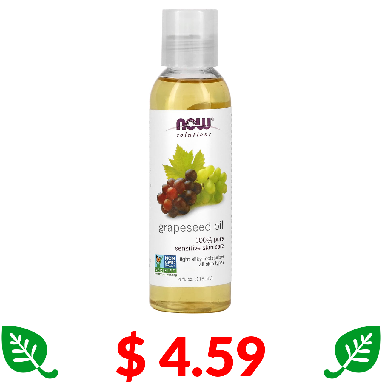 $ 4.59 Now Foods, Solutions, олія з виноградних кісточок, 118 мл (4 рідк. унції)