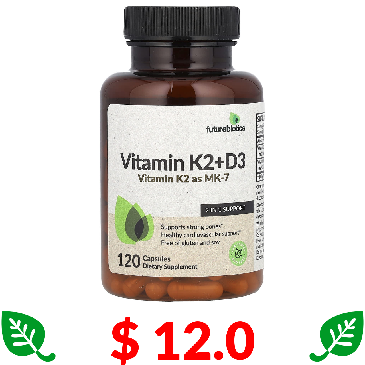 $ 12.0 Futurebiotics, Вітамін K2 + D3 з вітаміном K2 у формі МК-7, 120 капсул