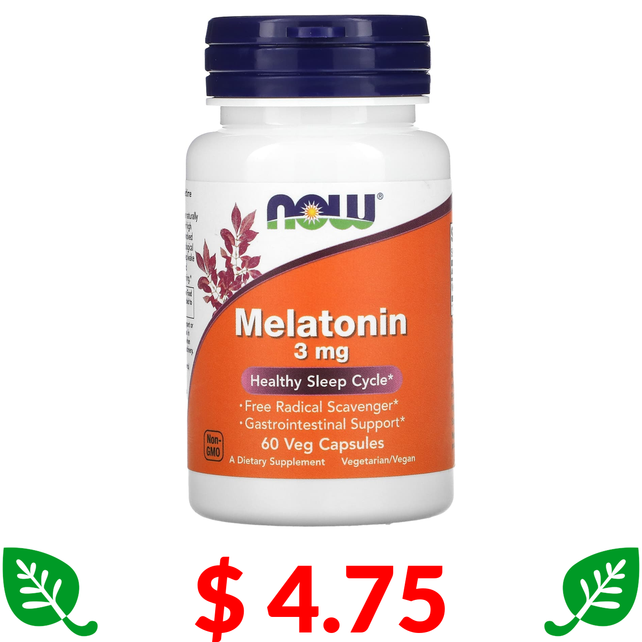 $ 4.75 Now Foods, мелатонін, 3 мг, 60 вегетаріанських капсул