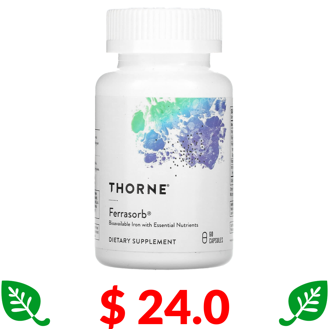$ 24.0 Thorne, Ferrasorb, залізо з кофакторами, 60 капсул