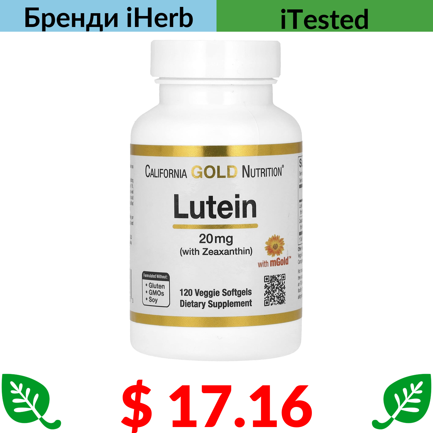 $ 17.16 California Gold Nutrition, лютеїн із зеаксантином, 20 мг, 120 вегетаріанських капсул