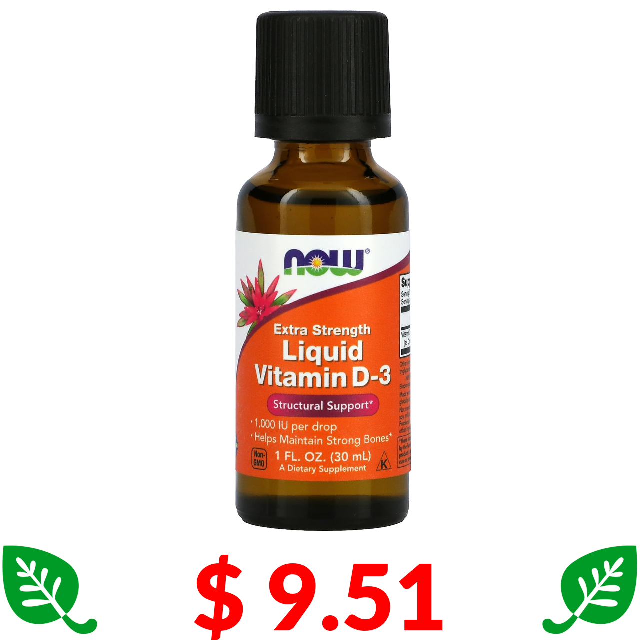 $ 9.51 Now Foods, рідкий вітамін D3, з підвищеною силою дії, 1000 МО, 30 мл (1 рідка унція)