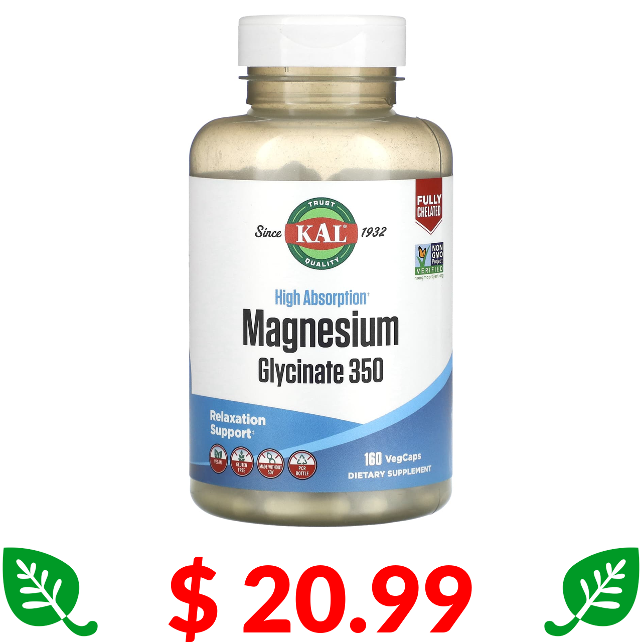 $ 20.99 KAL, гліцинат магнію з високою абсорбцією, 350 мг, 160 капсул VegCap