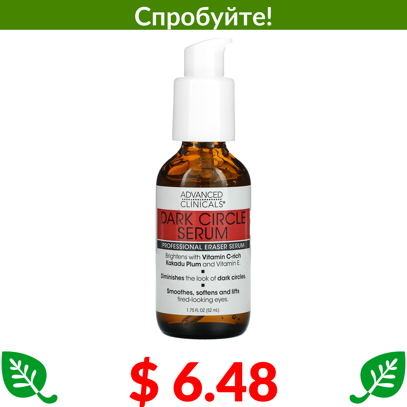 $ 6.48 Advanced Clinicals, сироватка проти темних кіл, без ароматизаторів, 52 мл (1,75 рідк. унції)