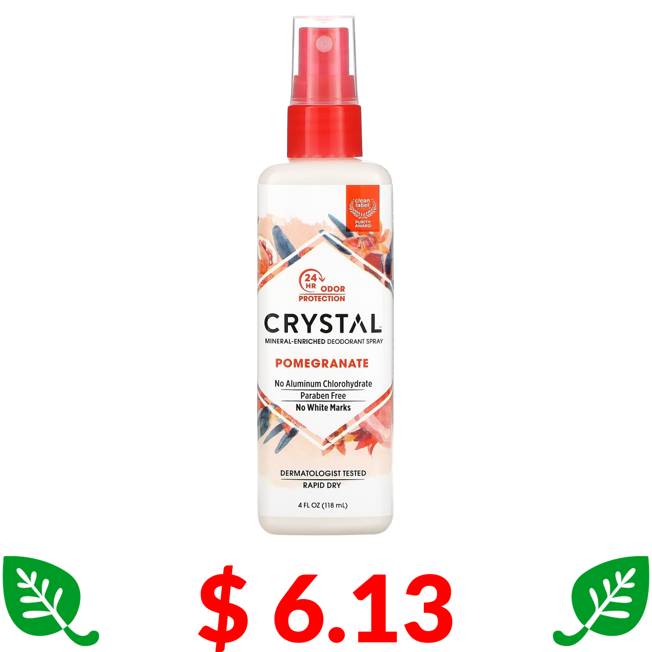 $ 6.13 Crystal Body Deodorant, мінеральний спрей-дезодорант, гранат, 118 мл (4 рідк. унції)