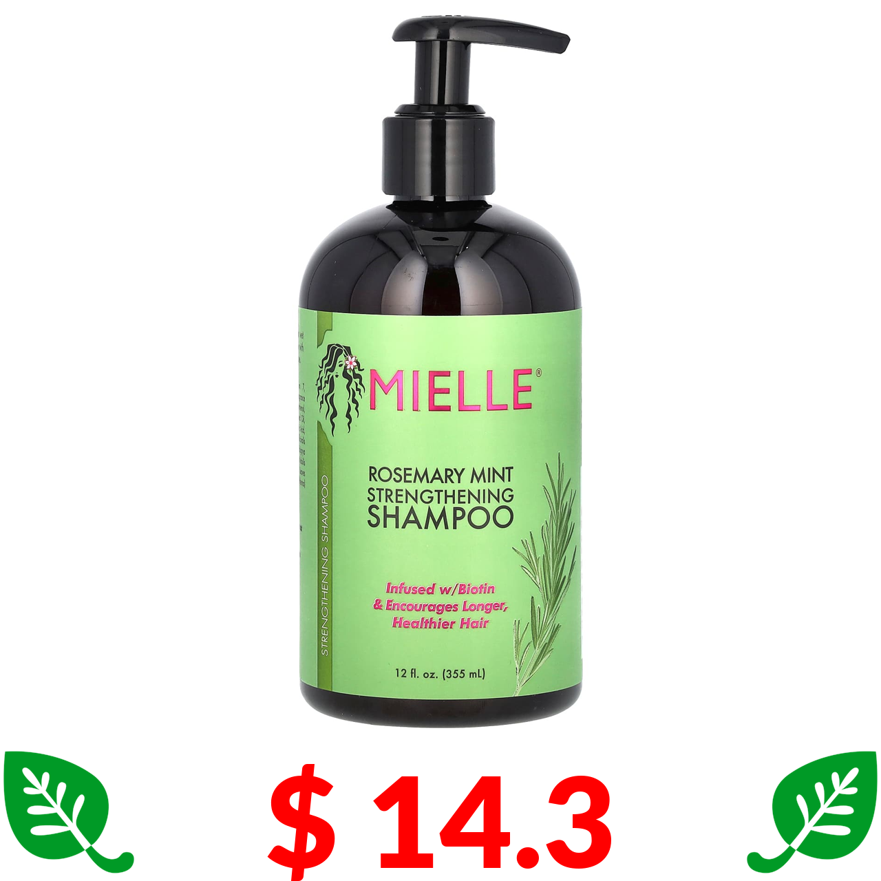 $ 14.3 Mielle, Зміцнюючий шампунь, м'ята з розмарином, 12 рідких унцій (355 мл)