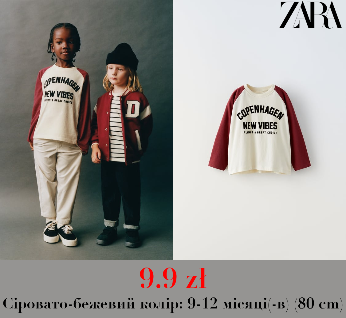 9.9 zł ФУТБОЛКА З ФЛОКОВАНИМ НАПИСОМ І РУКАВАМИ-РЕГЛАН