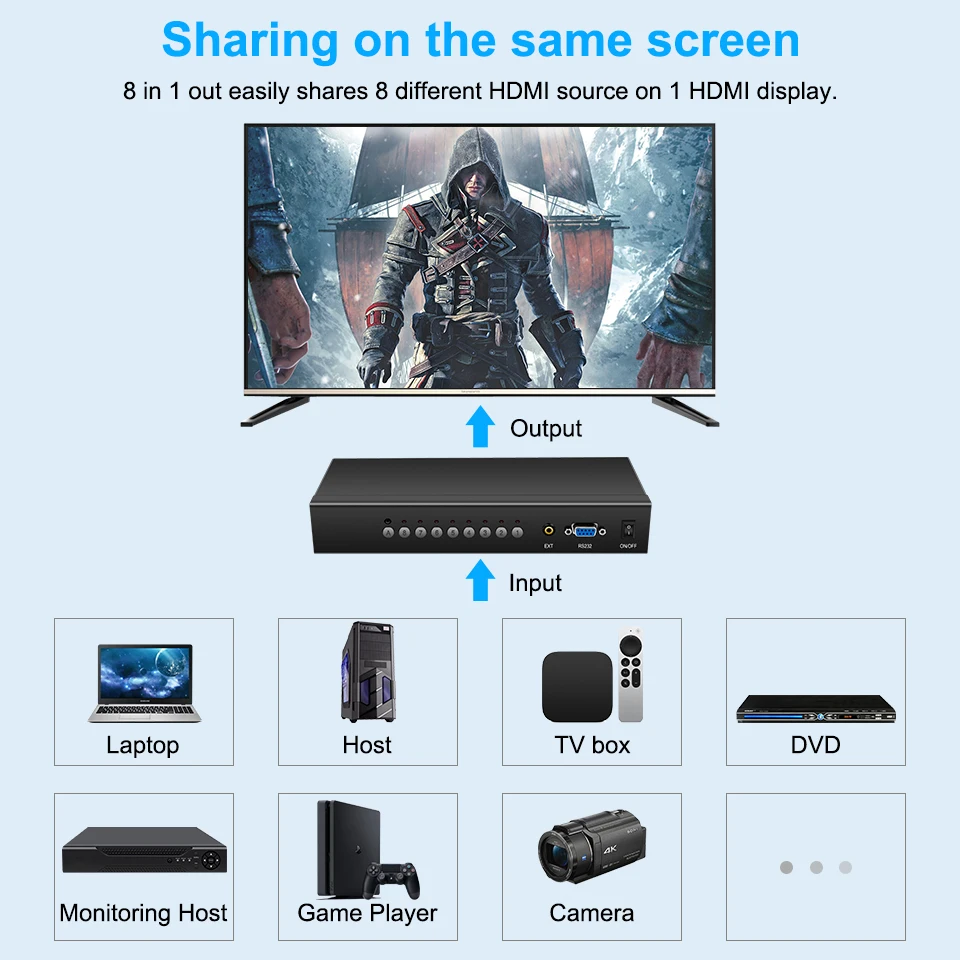 «4k30hz HDMI 8x1 switcher converter 8 HDMI input to 1 HDMI output serial digital video signal switch for Camera Projector Monitor» по лучшей цене на рынке! Всего за 120$ (11400рублей)