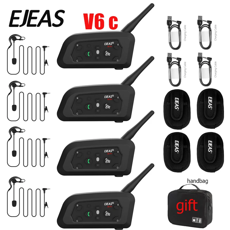 4pcs EJEAS V6C Referee Intercom Headset Motorcycle Bluetooth 5.1Helmet Headset Intercom Waterproof Intercomunicador Interfones - Купить с бесплатной доставкой