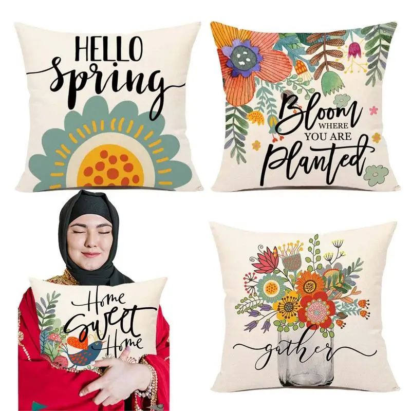 jUnSrnapHere you can buy 4pcs Spring Pillow Cover Portable Flower Pillow Case Durable Pillow Protection Covers With Concealed Zipper For Living Room Beds with free delivery to your post office.