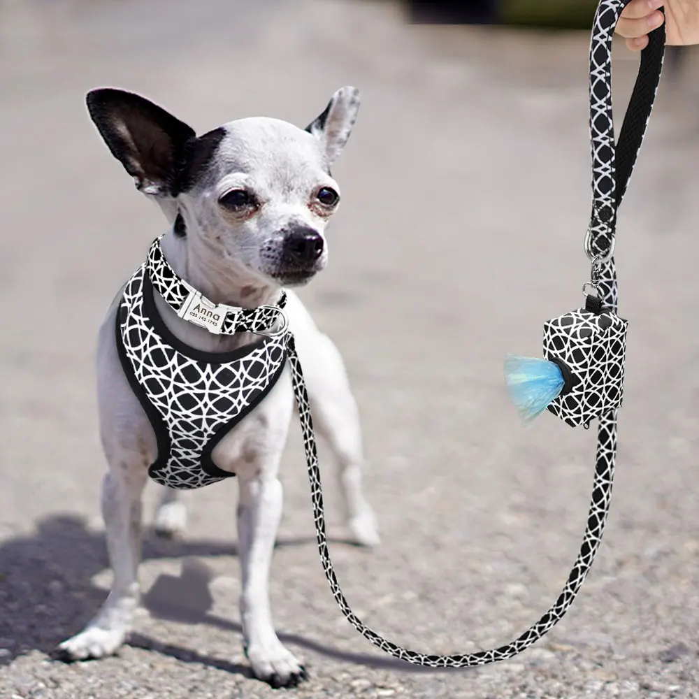"4pcs/lot Custom Nylon Dog Collar Leash Harness Poop Bag Set Personalized Dog Collars Pet Harnesses For Small Medium Large Dogs" * Buy Now Just For 16$