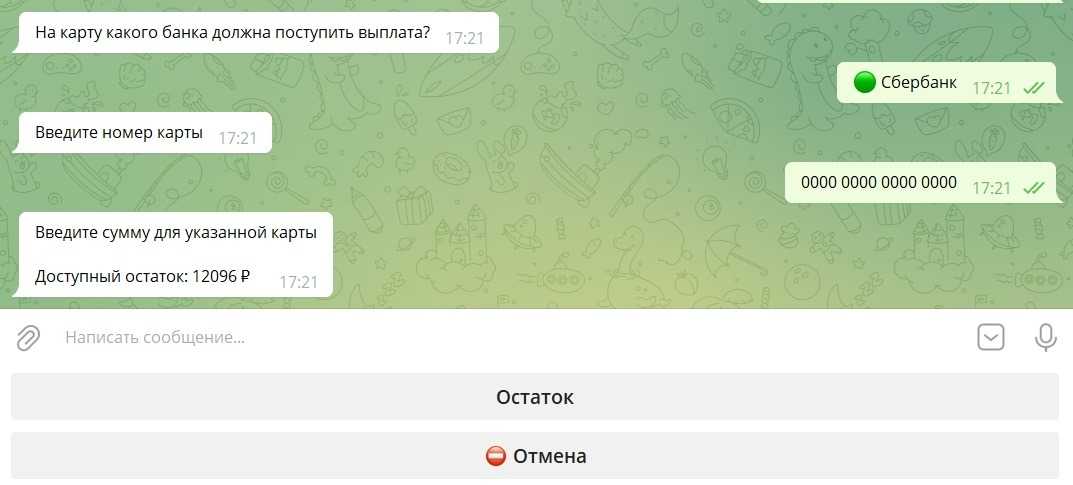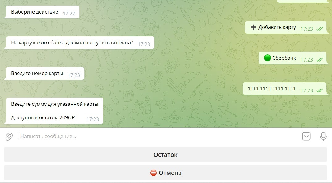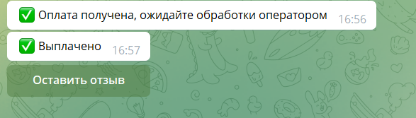 После успешно выполненной выплаты придет уведомления в бота: