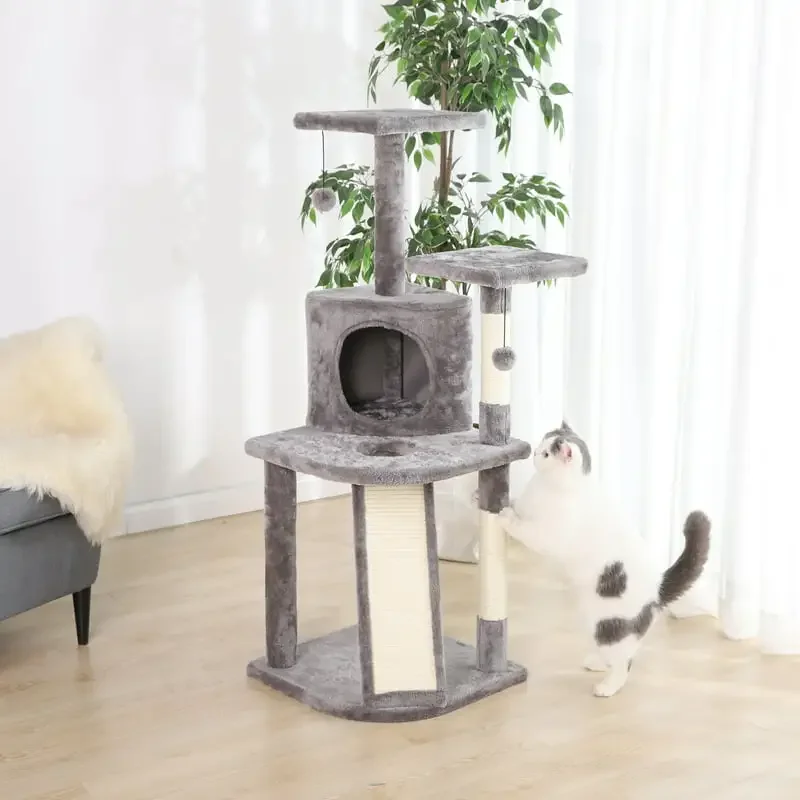5- Level Multi-Functional Cat Tree & Condo, Gray, 45" - Купить с бесплатной доставкой