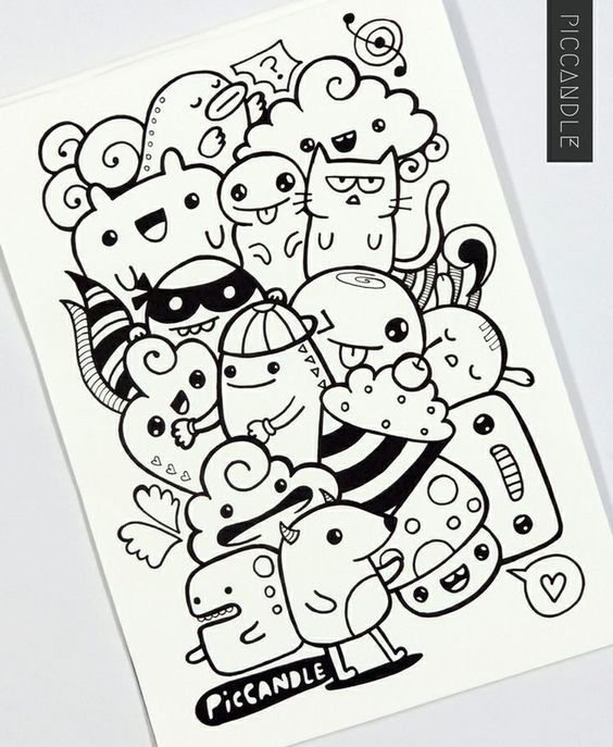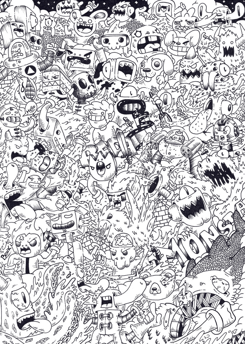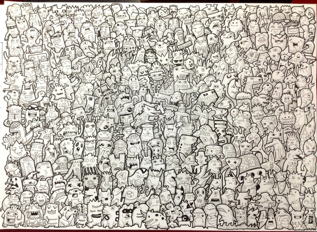 Дудл арт (doodle art) — у дудл арта и дудлинга, из предыдущего раздела, одна основа — произвольный рисунок руками, пока голова занята чем-то иным. На этом сходства заканчиваются. Но из-за схожего названия найти примеры дудл арта среди медитативных дудлов непросто. У дудл арта нет медитативной основы, зато есть второе название. Встречайте, паракули — рисунки, сделанные школьниками и студентами во время уроков и лекций. Пока голова занята учебой, на полях тетрадей и партах появляются рисунки. Характерная черта паракулей — высокая детализация, манера исполнения и монстрики, 90% паракулей о монстриках.