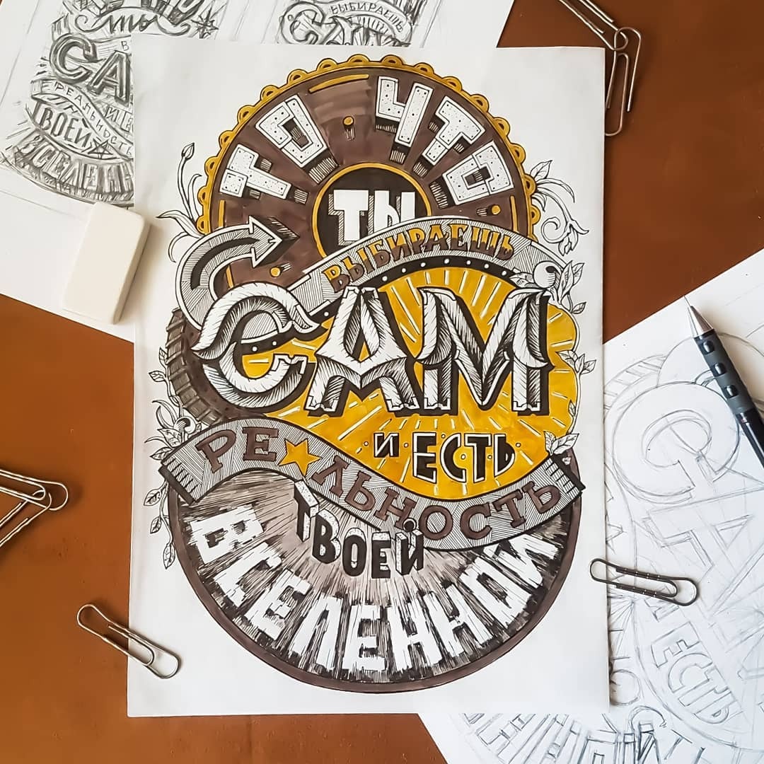 Если предыдущие пункты для меня были способами достижения целей. Медитация или конспект, то леттеринг для меня — одновременно вдохновение и доказательство величия человека. Когда я рассматриваю работы людей, которые показал в этой статье, внутри разгорается желание творить. В моем случае — писать. Это одна из двух дисциплин, которую хочется постичь, если будет время.