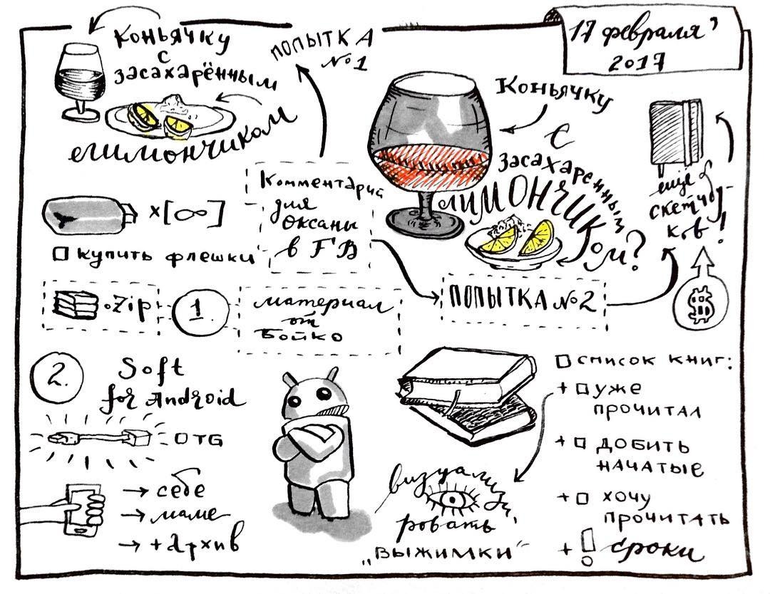 Скетчноутинг — образец того, как превратить скучный конспект в яркую и запоминающуюся заметку. Это способ оформить мысль наглядно и круто.