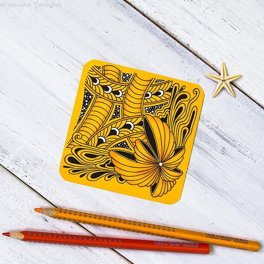 Зентанглы восхитительны тем, что рисуются в любом удобном месте. Любым пишущим инструментом на любой бумаге, но по канону — на акварельной бумаге размером 9*9 см.
