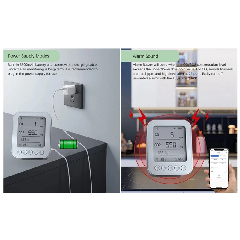 MWMgzuEiHere you can buy 5-In-1 Tuya Bluetooth CO2 Detector Monitor Smart Home CO2 CO Humidity Temperature Pressure Sensor Real-Time Detection Durable with free delivery to your post office.