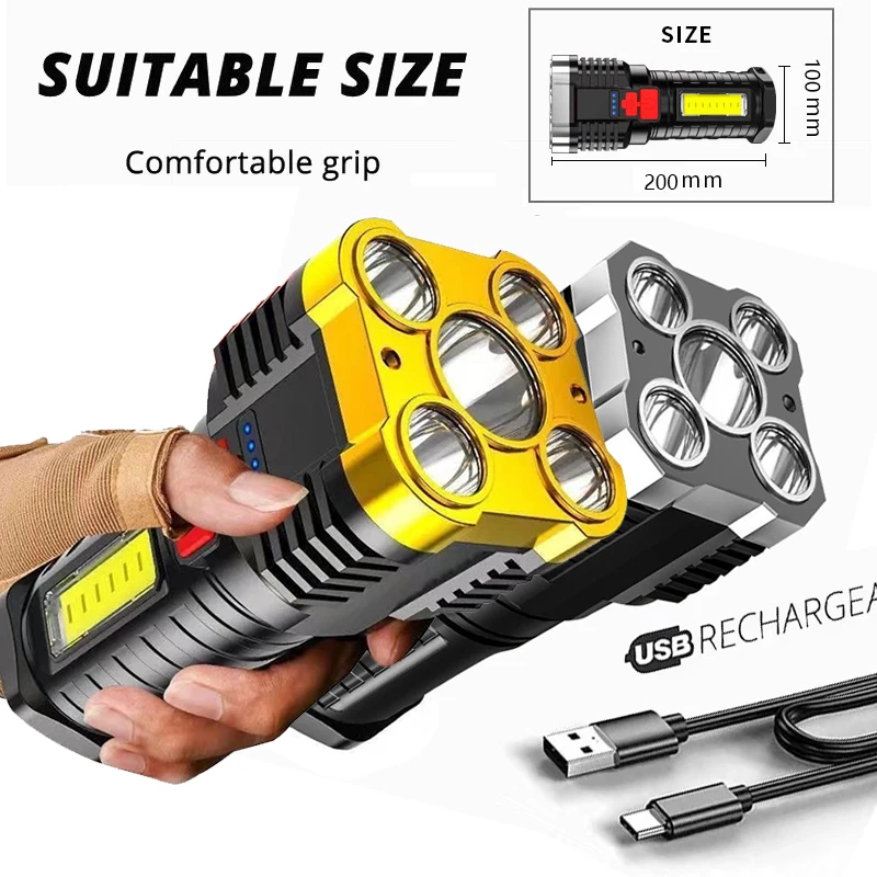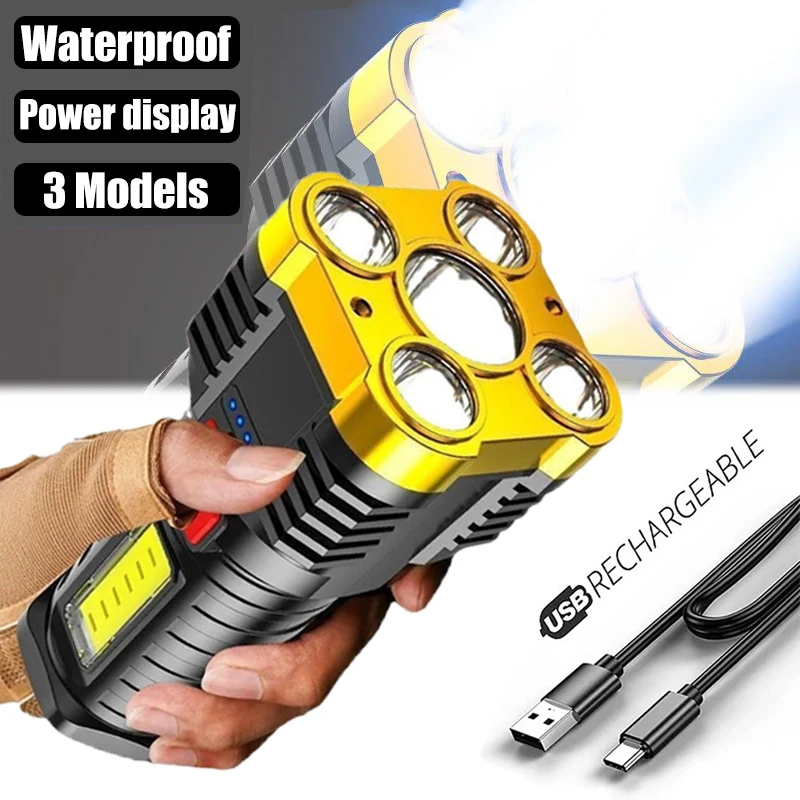 5 LED Powerful Flashlights Super Bright Rechargeable Outdoor Work Light Waterproof Long-range Multifunctional Portable COB Light - Купить с бесплатной доставкой