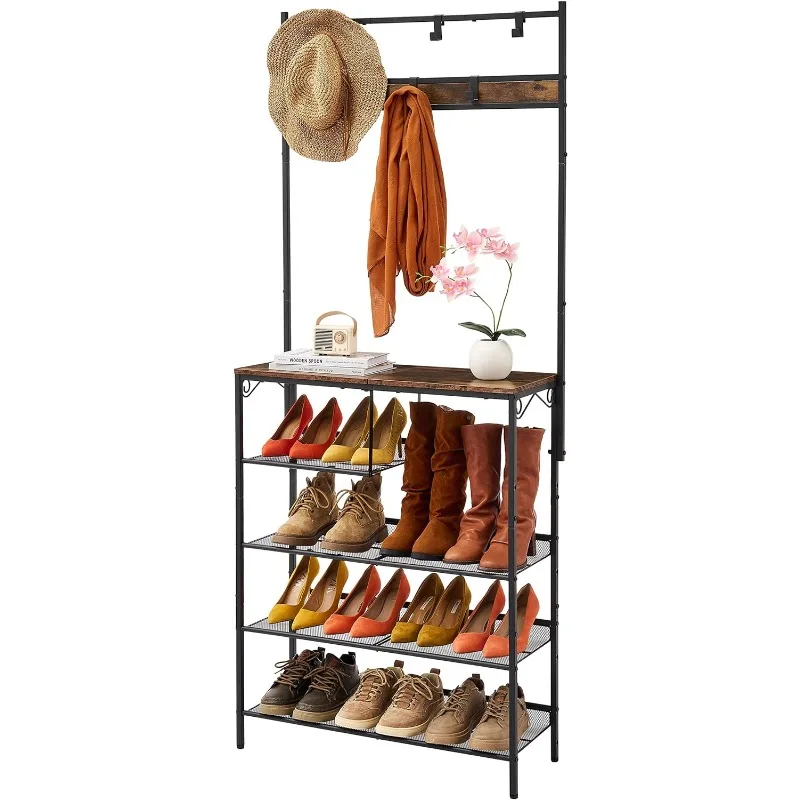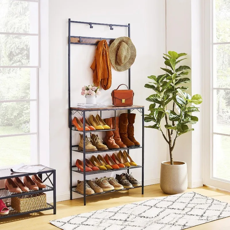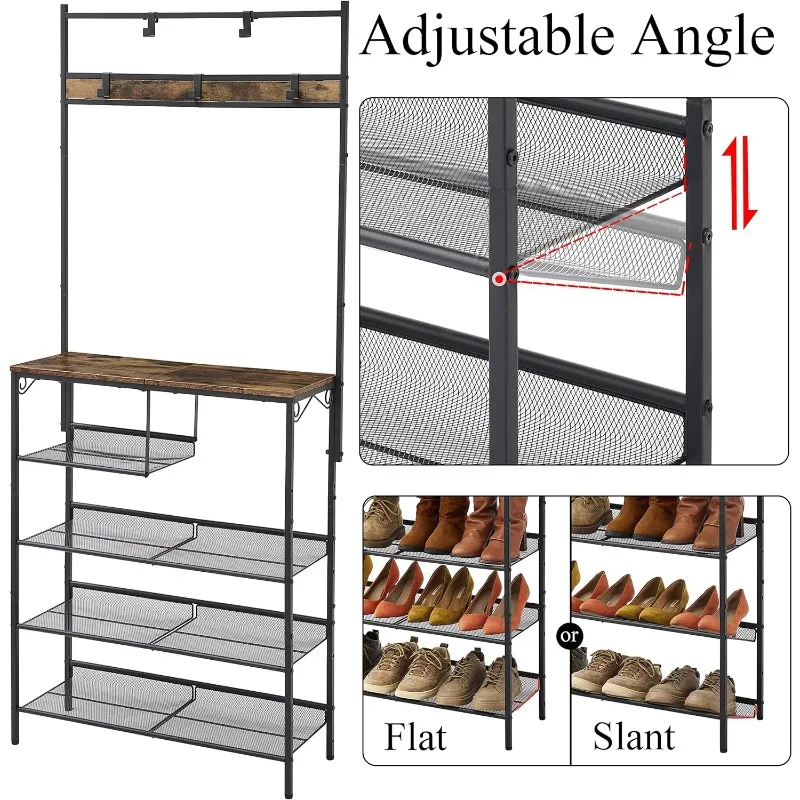 CfWQfYCUHere you can buy 5-Tier Hall Tree with Shoe Rack, Hall Trees for Entryway with Storage, Hall Tree with Bench and Shoe Storage, Mesh Slant with free delivery to your post office.
