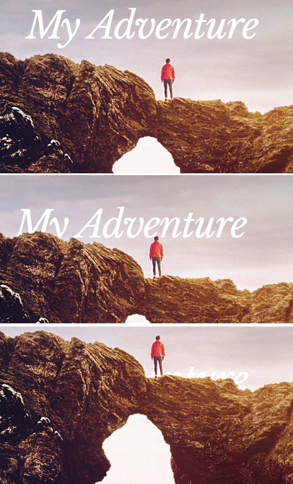 То на странице при прокручивании вниз можно сделать так, чтобы буквы постепенно бледнели и заходили за скалы: