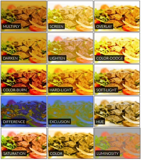 Режимы наложения можно использовать для того, чтобы сделать контент на сайте более уникальным. По сути, одно изображение имеет 15 различных цветовых вариаций, и можно выбрать любое из них, меняя всего одно значение в CSS.