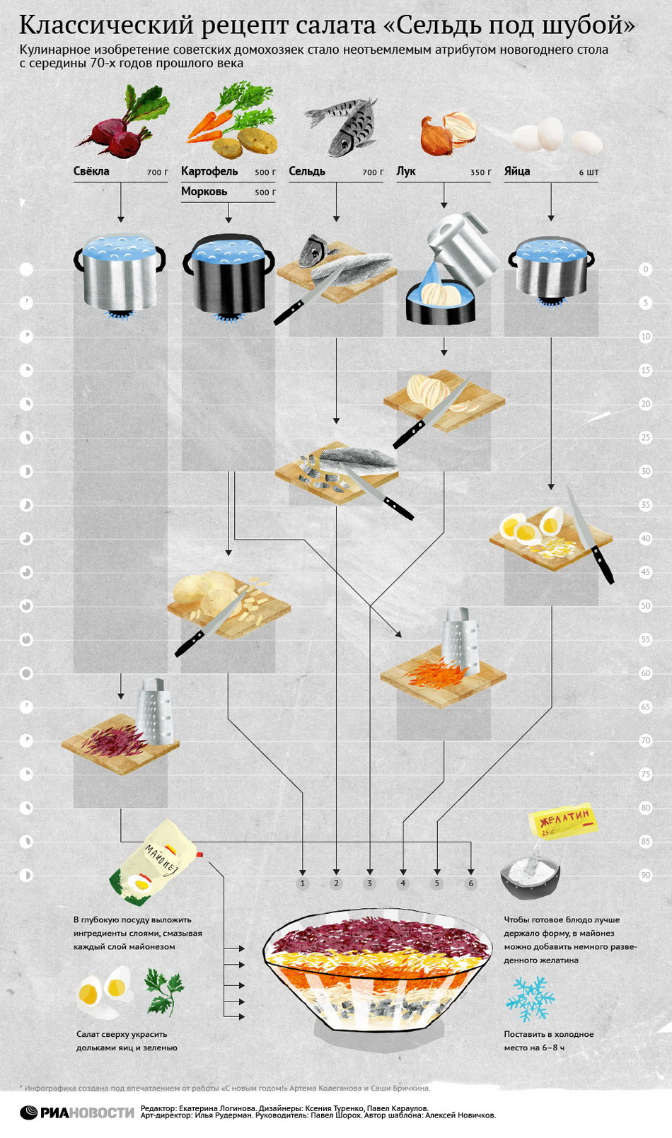 Снова «РИА Новости» эпохи Рудермана — и снова инструкция! На этот раз — алгоритм изготовления селедки под шубой. Вечная классика отечественного Нового года.