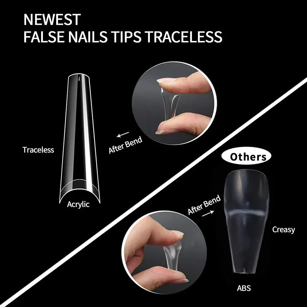 "500pcs No C Curve Straight Square XXL Long Coffin Acrylic Nail Art Tips Natural Clear Extra Long Press On Designed" * Buy Now Just For 6$