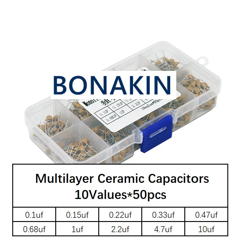 500pcs/lot 10Values*50pcs 0.1uF-10uF(104~106) 50V Multilayer Ceramic Capacitors Assorted Kit Assortment Set with Storage Box - Купить с бесплатной доставкой