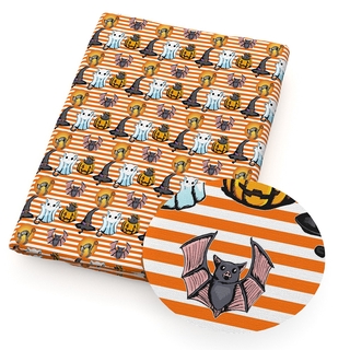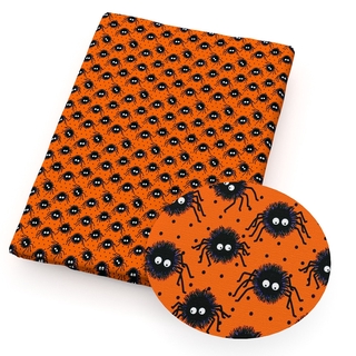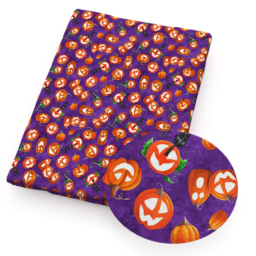 Orange Pumpkin Print Fabric, Ghost Halloween poly cotton fabric . . .