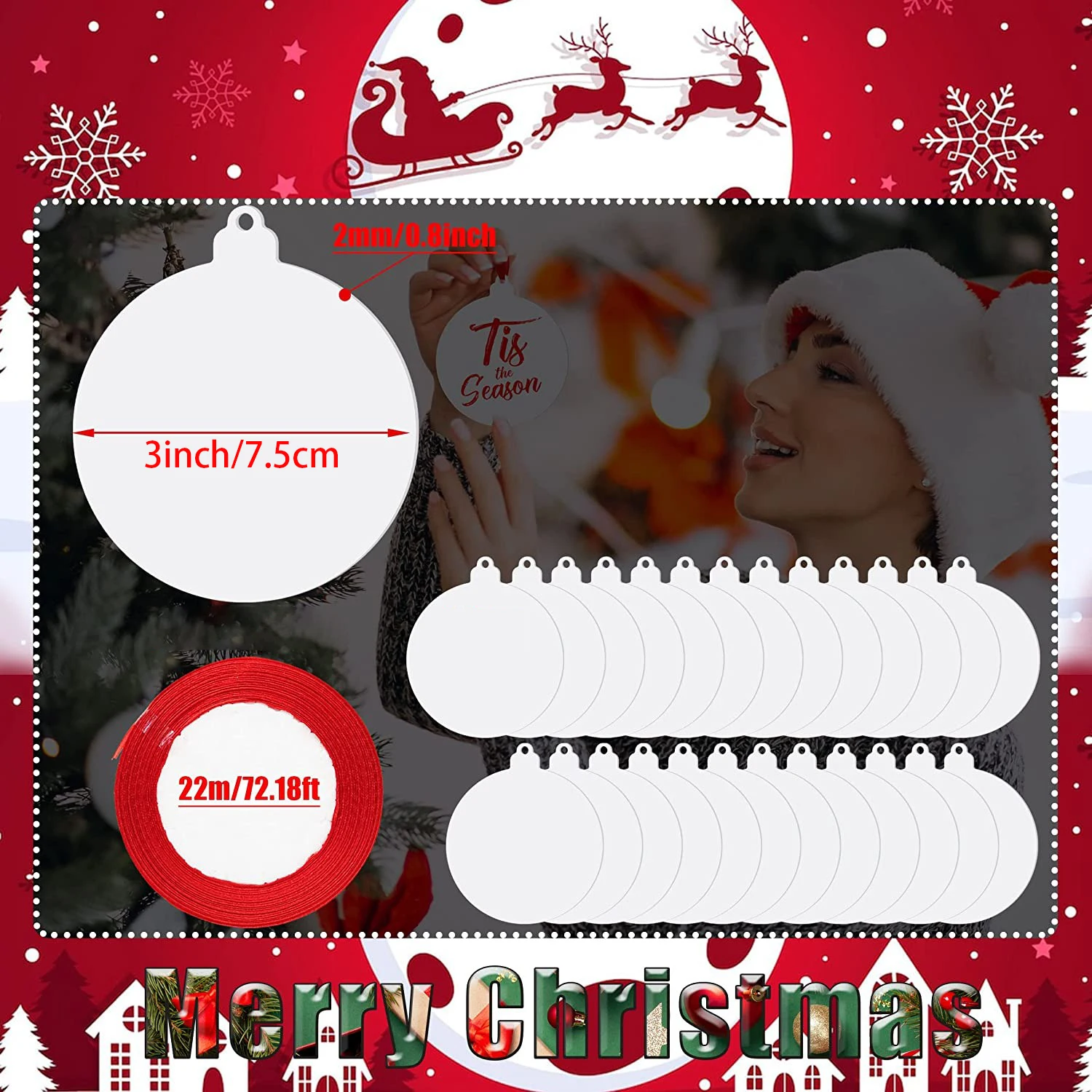 «50PCS 3" Acrylic Christmas Ornament Blank Circle Discs for Crafts, Round DIY Decorative Kit Stocking Tag for Xmas Day Home Party» по лучшей цене на рынке! Всего за 47$ (4465рублей)