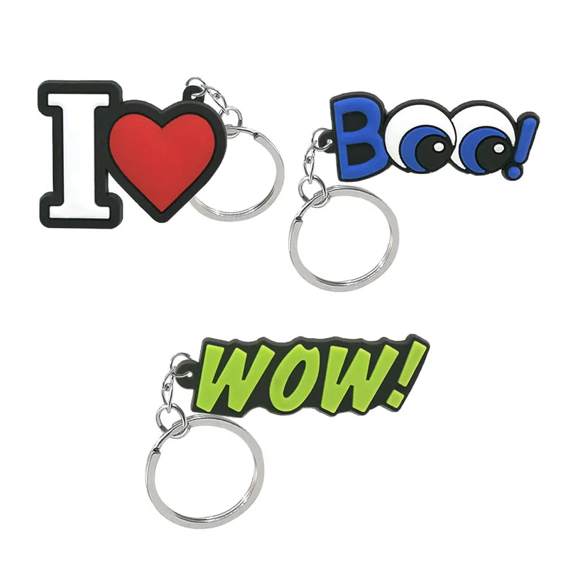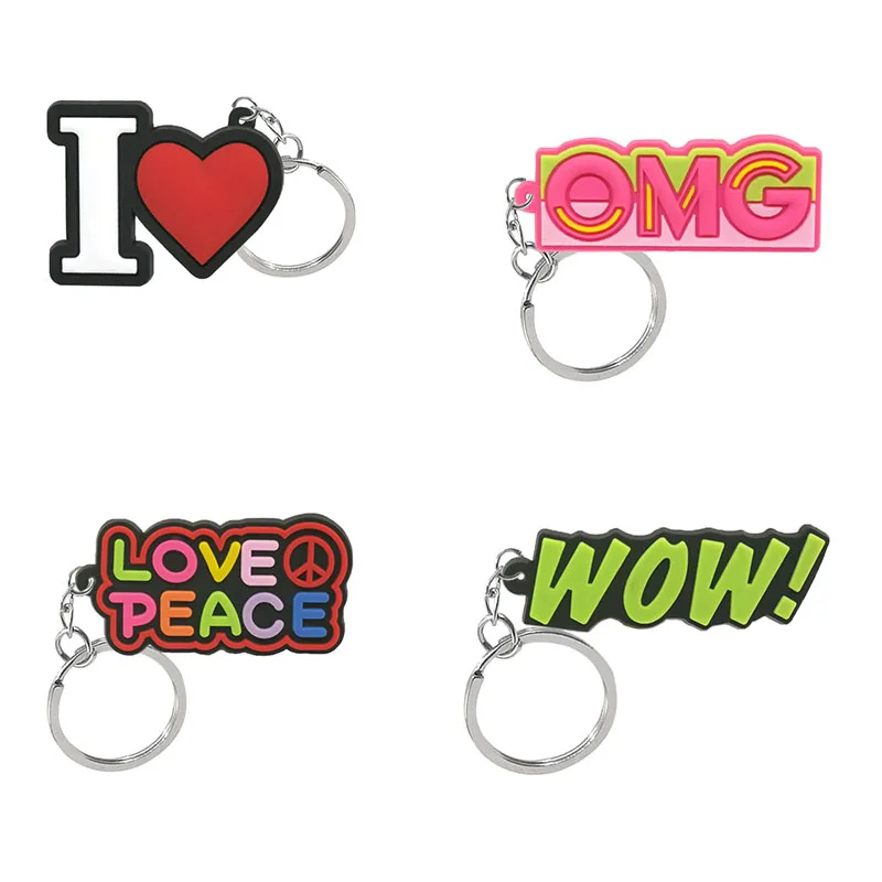 kcUOvlOZHere you can buy 50PCS PVC Keychain Accessories Words Series Love&Peace WoW Keyring Funny Design Keyring Cute Custom Key Chain Gadget for Man with free delivery to your post office.