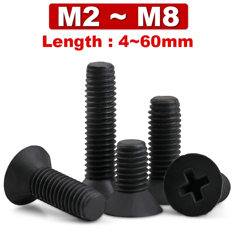 "50Pcs M2 M2.5 M3 M4 M5 M6 M8 Black Nylon Flat Head Screw,countersunk Head Cross Bolt Insulated Plastic Machine Screw 4mm~60mm" * Buy Now Just For 4$