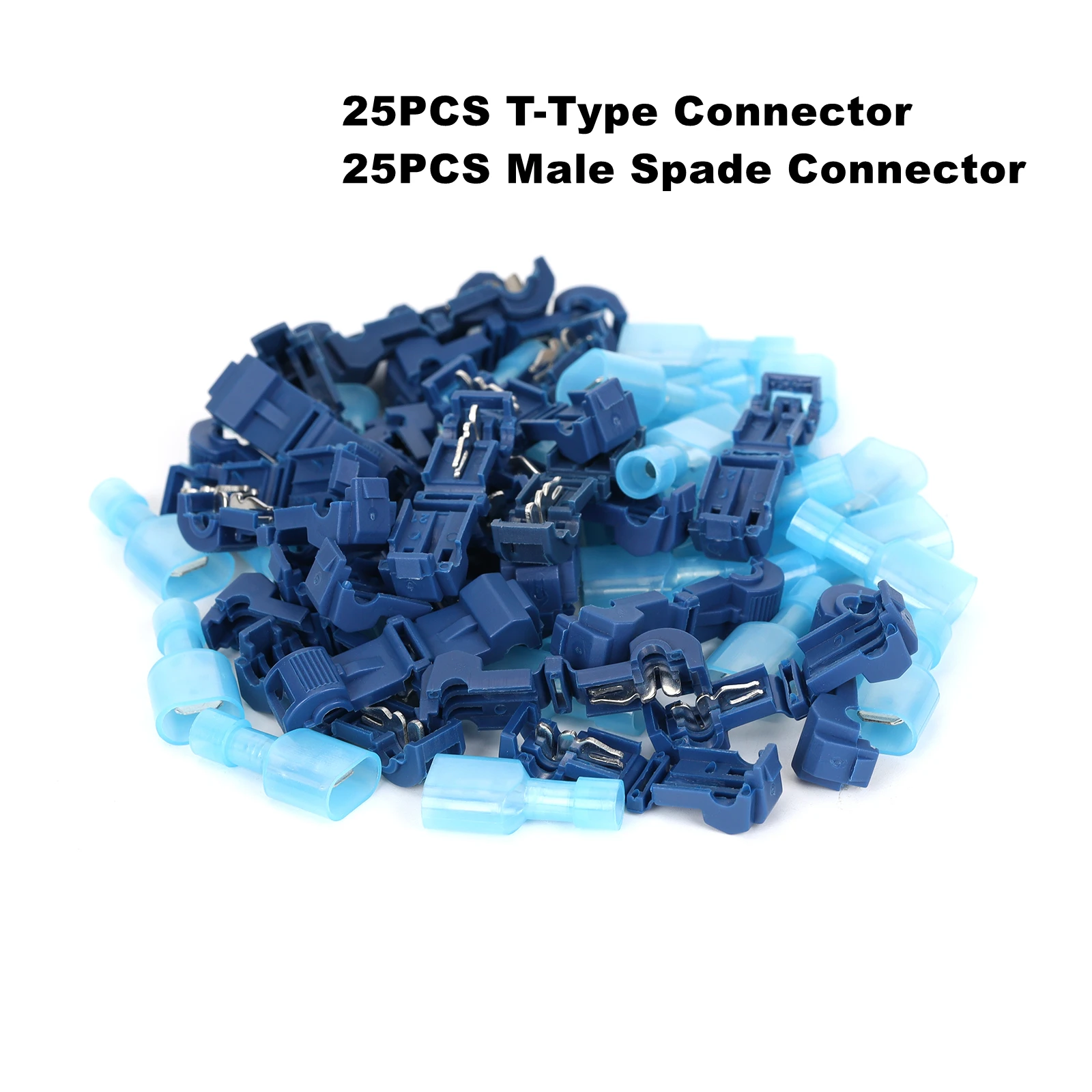 «50Pcs/Lot Blue AWG18-14 T-Type Self-Stripping Quick Connector+Nylon Male Insulated Quick Spade Disconnect Terminal for Wire,Car» по лучшей цене на рынке! Всего за 4$ (380рублей)