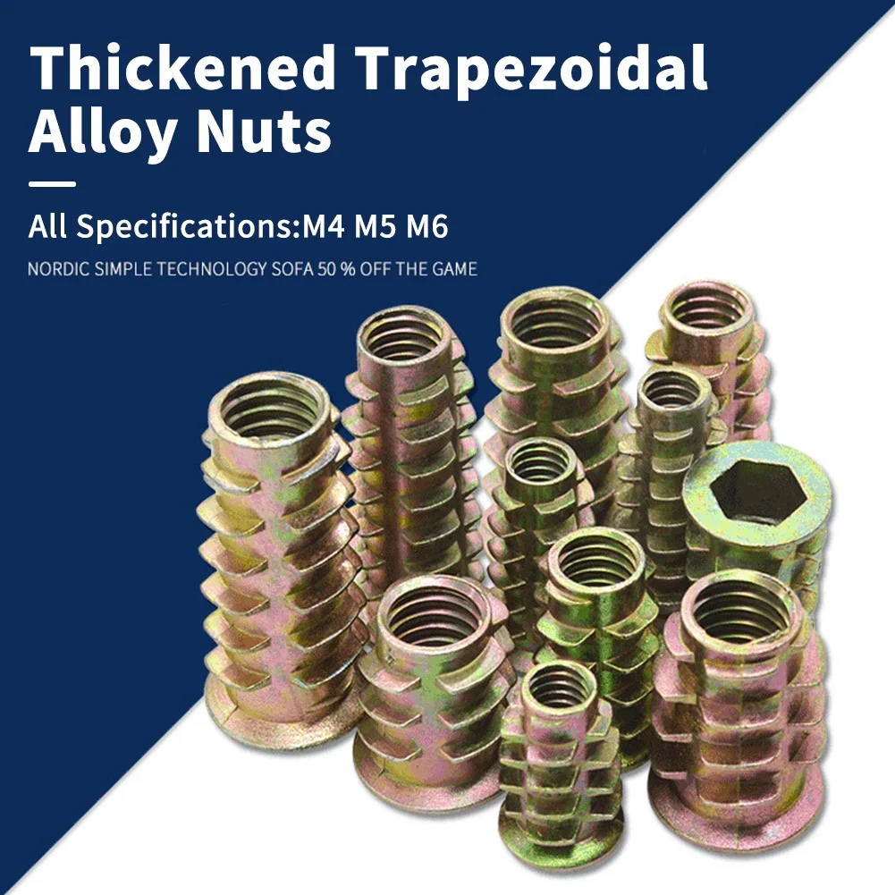 "50Pcs/Set Zinc Alloy Die Cast Insert Nuts M4 M5 M6 Insert Nuts Easy to Use For Woodworking Furniture Wardrobe Chair High Quality" * Buy Now Just For 4$